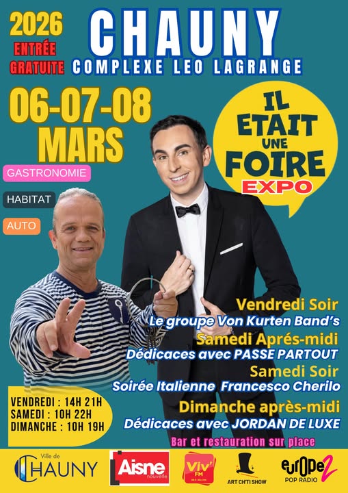 La foire commerciale approche à Chauny rendez vous les 6 , 7 et 8 Mars prochain au complexe Léo Lagrange avec de nombreux exposants et en extérieur des concessionnaires automobiles